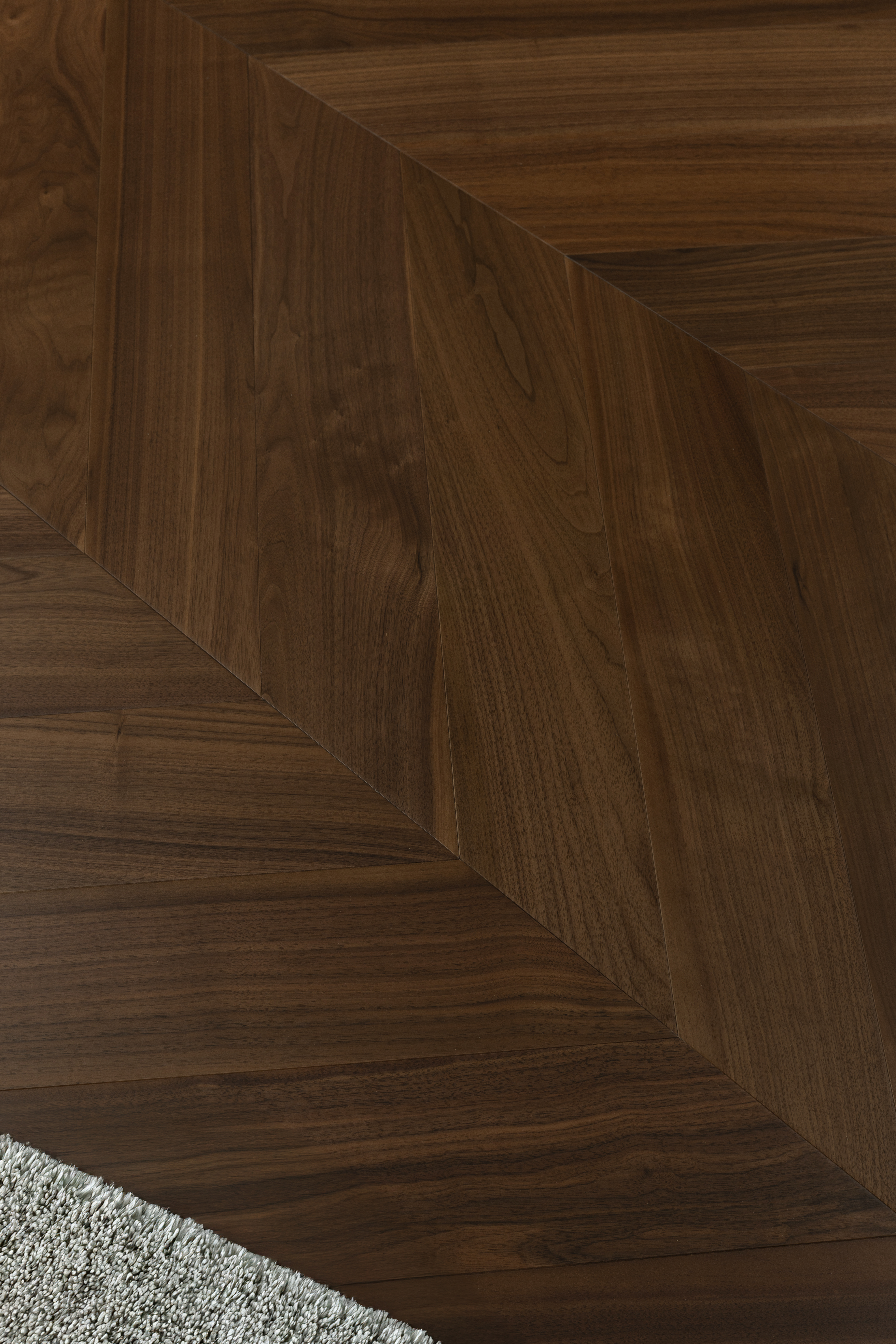 Трехслойная инженерная доска Франзуская елка из ореха с 4-сторонней фаской - это классика в современном исполнении. Отлично сочетается с лепниной и пастельными тонами в отделке.