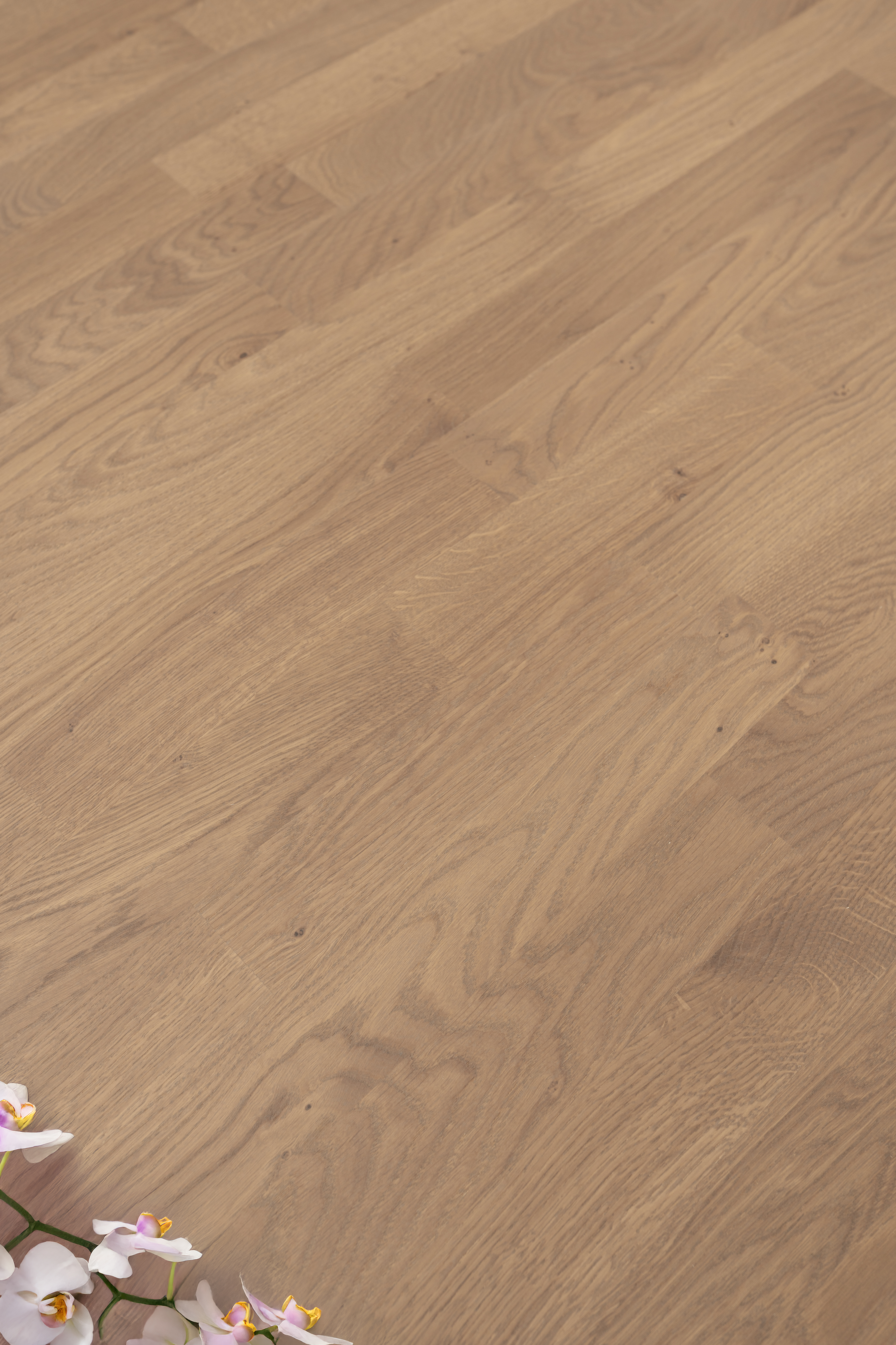Декор сочетает матовое покрытие и обработку щеткой, благодаря чему проявляется глубокая текстура дерева. Такое сочетание придает полу благородный вид, сохраняя при этом тактильную теплоту натурального материала. Идеальный выбор для тех, кто ценит естественную красоту и уют в интерьере.