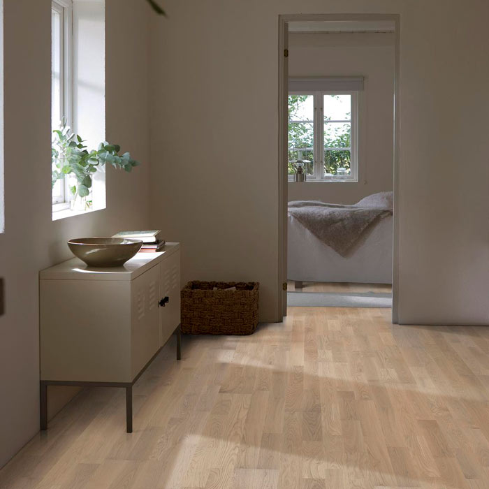 Благородная роскошь натуральной паркетной доски «Дуб Портофино» служит безукоризненно выверенным решением для респектабельного интерьера. Сдержанные коричнево-бежевые тона смягчены белым лаковым покрытием, которое защищает поверхность от царапин и чрезмерного увлажнения. Натуральная древесина для изготовления паркета выращивается в экологически чистой сертифицированной местности и отвечает самым строгим требованиям безопасности.