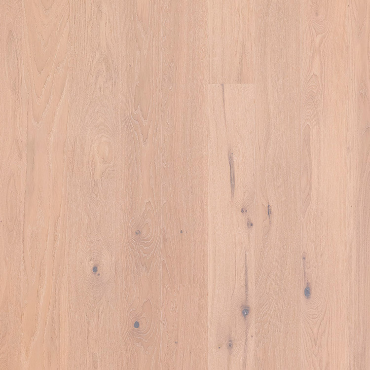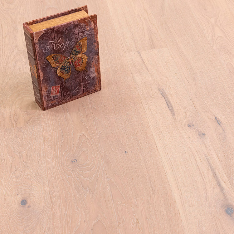 Однополосный паркет из дуба сортировки Кантри. Каждая доска обработана щеткой и покрыта белым маслом. Допускается: разнотон; редкая заболонь; сердцевинные лучи; темные полосы; сучки, в том числе не полностью зашпатлеванные.
