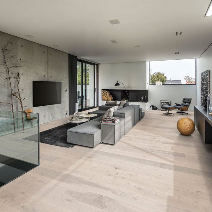 Полупрозрачный белый тонированный и брашированный однополосный дубовый пол из коллекции Люкс уравновешивает светлые и тёмные контрасты древесины, мягко просвечивая тёплые дубовые тона. Четырехсторонняя микро-фаска создаёт впечатление традиционного дощатого пола. Покрытие ультраматовым лаком подчёркивает естественные узоры древесины, создавая впечатление необработанного, недавно распиленного дерева. Кроме того, такое покрытие эффективно устраняет блики и защищает пол от ежедневного износа.Допускаются все возможные в природе вариации цвета древесины – от светлого до тёмно-коричневого. Может встречаться заболонь, зашпатлёванные сучки и трещины могут различаться по размеру и количеству.